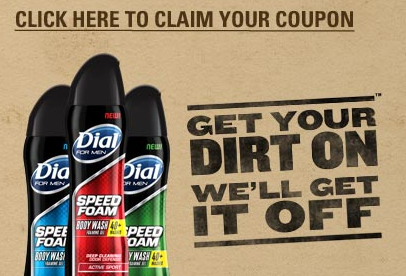 Hurry to the Dial For Men Facebook page, click on the “Anti-Loofah Pledge” tab to possibly score a high value $3/1 Dial For Men Speed Foam body Wash coupon.