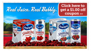 Like’ Ocean Spray on Facebook , then click on the Recipe Contest tab. You’ll then need to click on the ‘Click here to get a $1 Off Coupon’ link to print a $1 off any one 4 pack of Ocean Spray Sparkling Juice Drinks coupon (expires 9/7).