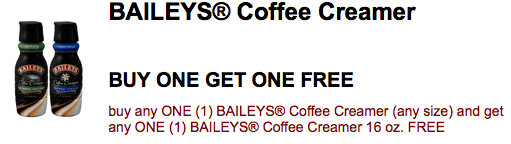 Head on over to the Bailey’s Facebook page and get this deal. “Like” their page and authorize their app to get a coupon for Buy One Get One FREE Bailey’s Coffee Creamer!