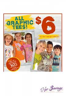 The Children's Place is currently having an awesome sale! Right now, you can score all graphic tees for only $6.00 each! And you can also take an additional 30% off clearance items, items are already marked up to 70% off so with the additional 30% off, your sure to find some really sweet deals!!