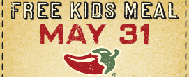 Head over to Chili's today, May 31st, and you'll get a FREE kids meal with the