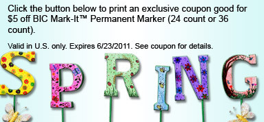 coupon good for $5/1 BIC Mark-It Permanent Markers (24-36 ct.). Let us know if