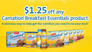 for $1.25 off any one Carnation Breakfast Essentials product (expires 6/19)!