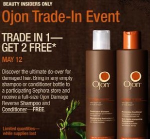 If you are a Beauty Insider, which is free to join, you can also bring in any empty full-size shampoo or conditioner on May 12th and receive one full-size set of damage reverse™ Restorative Shampoo and Conditioner for FREE. While Supplies last.