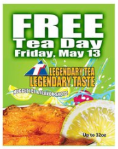 On Friday, May 13th Thortons and Speedway will be having a Free Tea Day. You can stop in any time between 6:00 am – 11:30 pm for your free tea.