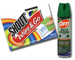 First 3,000* to respond will receive one canister of OFF! Deep Woods® Dry Repellent and one pack of Shout® Wipes.