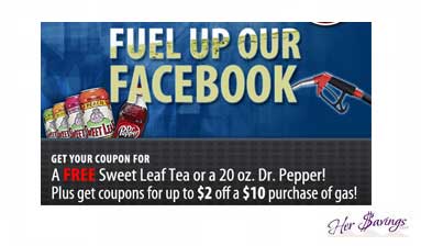Wow! Head on over to the Murphy USA Facebook page,”like” them and click on the Fuel Murphy Up tab on the left hand side to print a coupon for a FREE Sweet Leaf Tea OR a 20 oz. Dr. Pepper! Plus, you’ll be able to print coupons for up to $2 off a $10 purchase of gas, depending on the number of “likes” they get…the more “likes” they get the higher the coupon value will be (see chart below)! Keep in mind that you’ll need to “allow” the App in order to fill out the form to print the coupons. Once they reach the certain levels stated below, they’ll send out the coupons to everyone who has completed the App.