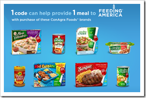Each of those products has a code that you can enter HERE that helps feed one meal to “Feeding America”.