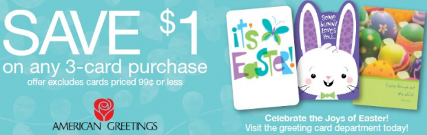 Also, Rite Aid will have a $3/3 American Greeting cards Rite Aid in ad coupon available the week of 3/27! And their cards start in price at just $1.29, so you should be able to score 3 FREE cards when you combine both coupons! Remember, this deal doesn’t start until 3/27.