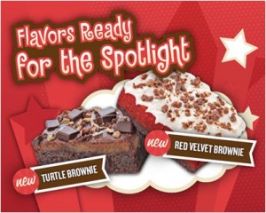 You can score a FREE sample of the new Red Velvet and Turtle brownie flavors all day today, March 15th at participating Great American Cookie locations across the country.