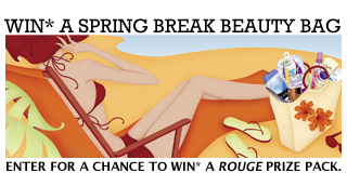 PRIZE: Twenty-five Grand Prizes (five per drawing) with a total approximate retail value of $3,750 will be awarded. Each Grand Prize winner will receive a Sponsor-specified assortment of Procter & Gamble beauty and personal care products in a Rouge tote bag (Approximate Retail Value: $150 per prize). Prize consists of only the items specifically listed as part of the prize. Limit one Grand Prize per household.
