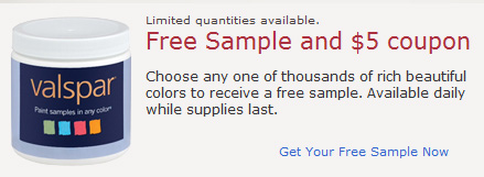 Valspar is once again giving away 1,000 paint samples each day in the color of your choice. Each Valspar paint sample kit includes a paint roller and tray plus a $5 coupon off your next Valspar paint purchase at Lowe's!