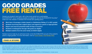 Kids in grades K-12 can score a FREE Blockbuster Favorites Movie Rental for Good Grades!
