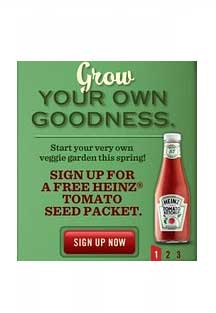To score a FREE Heinz Tomato Seeds Packet from Red Robin, wait for the ad to scroll on the home page, click that and then submit your information.