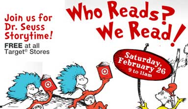 This February 26th, join Target for story time fun in honor of Dr. Seuss — free in all Target stores from 9am – 11am.