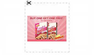 If you like Fruit & Grain bars then you need to head on over to the Sunbelt Facebook page, “like” them, then click on the “Coupon” tab (lower left side) to print a high value buy one Sunbelt Fruit & Grain bars (8 ct box) get one FREE – up to $2.59 value – PDF coupon!